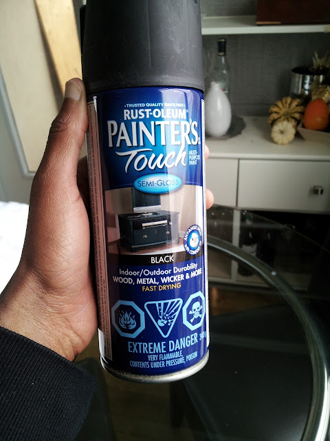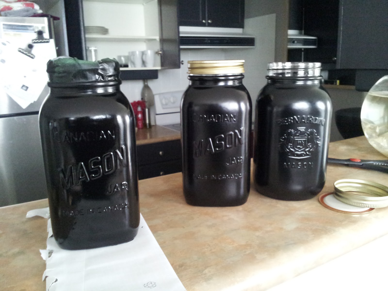 Last week I saw this really neat pin on Pinterest that transformed Mason jars into decorative vases by painting them. After looking at my pantry, I decided to jazz up my plain Mason jars by spraying then with some left over black paint. I picked up these jars from the thrift store up the street from my place (3 for $1) and soaked them in some vinegar and lime juice to clean them.