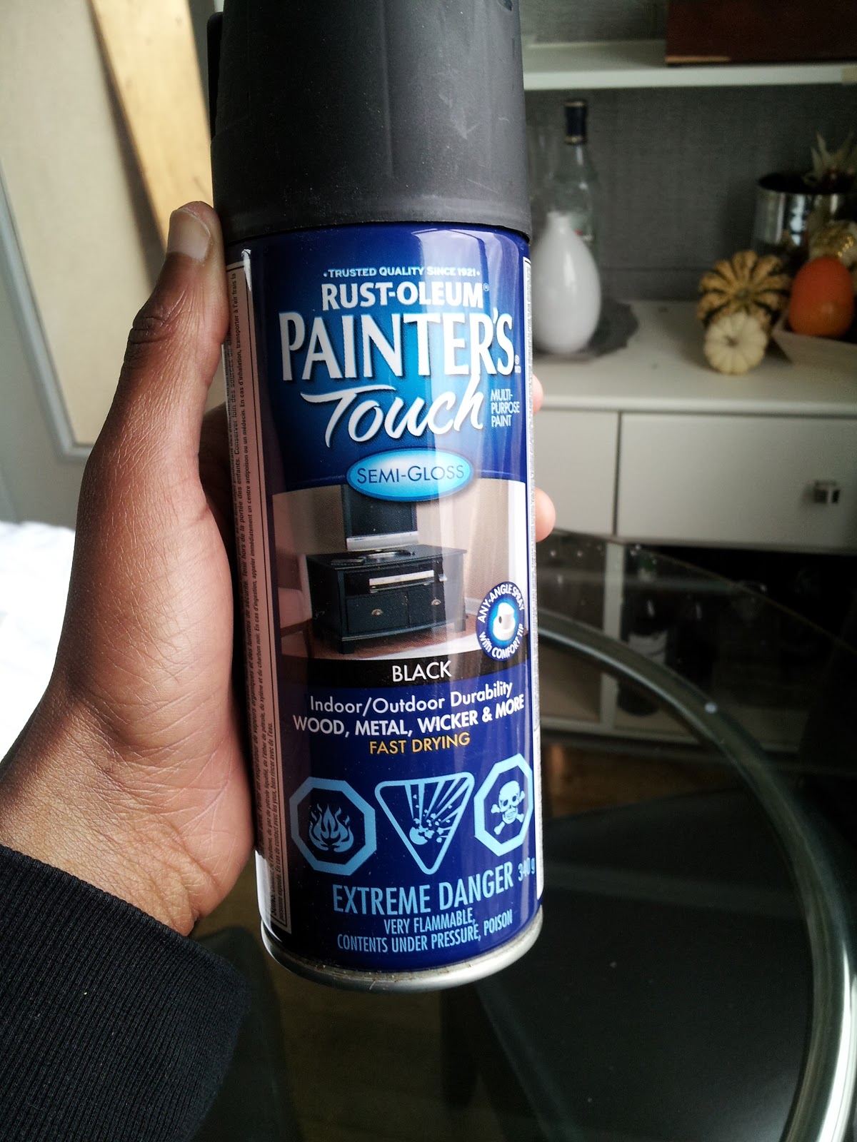 This was a fun quick DIY. All you need is some jars, spray paint and painters tape. Tape the rim of the jar and spray away! To identify the contents of the jar, I took some chalk to the flat side of the jar once the jar had dried for a couple of hours. Now my pantry is looking all trim like a girl is a sexy black dress!