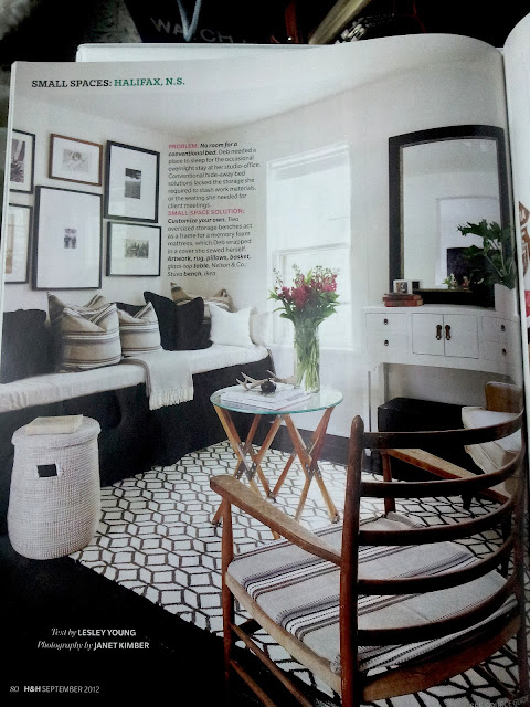 This September House & Home published their small space issue, which I always anticipate because they always have tons of great idea and small space solutions. There was one feature that stood out to me because of how efficiently the designer, Deb Nelson, used her space. Deb found a perfect location for her new home decor boutique in Halifax and decided to carve out a comfortable place to call home above it.